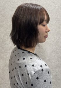 このカラーは、ブリーチをしないカラーのため、カラー剤で出せる最大限の透明感をしっかりひきだしました!